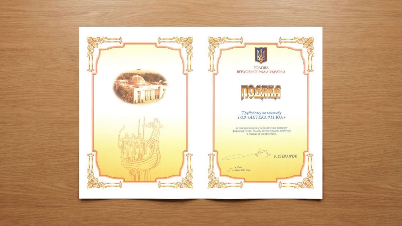 Подяка від керівництва парламенту стала символічним, але важливим знаком поваги до професії фармацевта — як до невід’ємної складової системи охорони здоров’я, що вистояла і продовжує працювати в умовах повномасштабної війни.