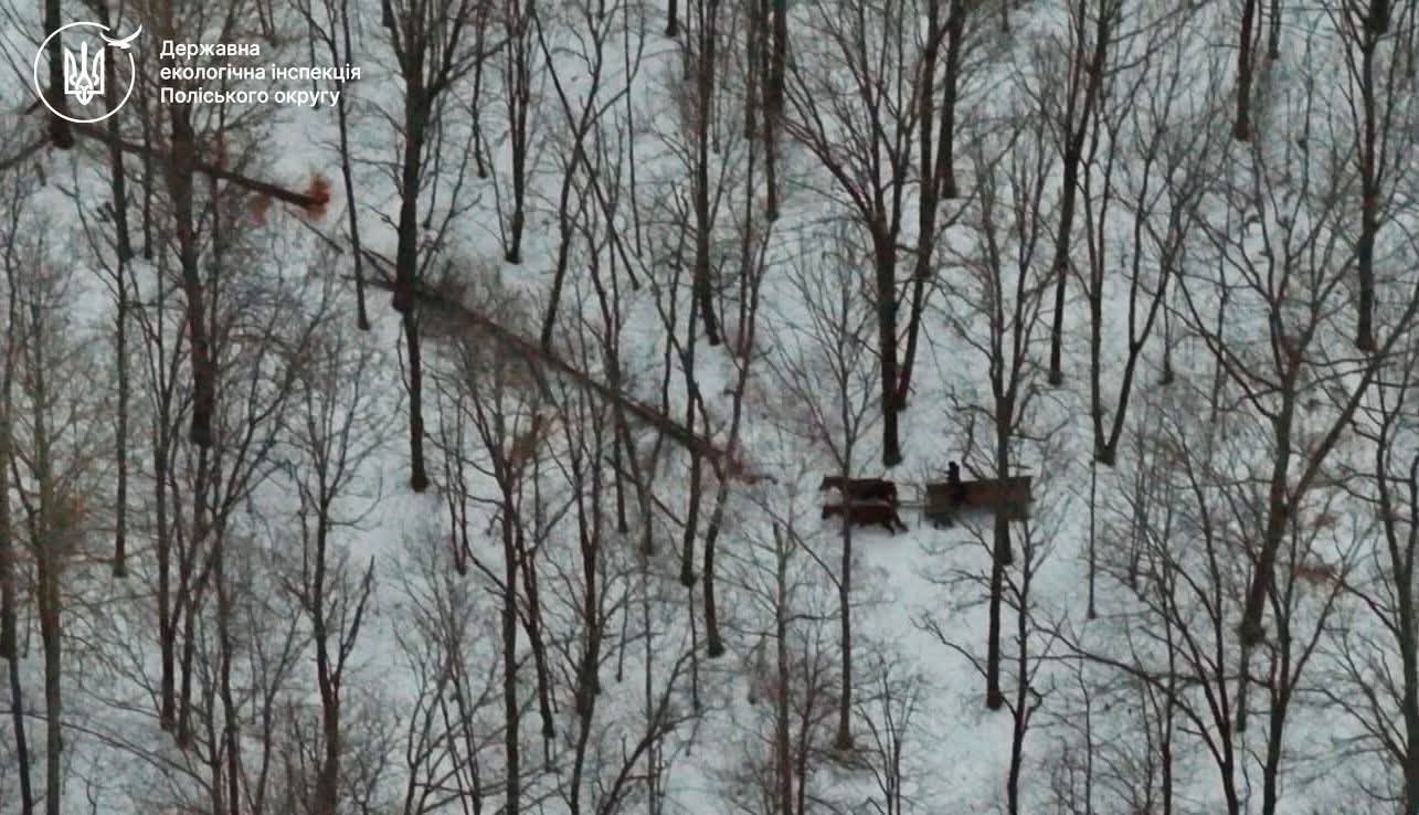 26 лютого під час проведення рейдового заходу поблизу села Стара Олександрівка Пулинської територіальної громади державними інспекторами з охорони навколишнього природного середовища Поліського округу із застосуванням безпілотного літального апарату у лісовому масиві державного лісового фонду зафіксовано факт незаконної порубки дерев та їх перевезення гужовим транспортом.