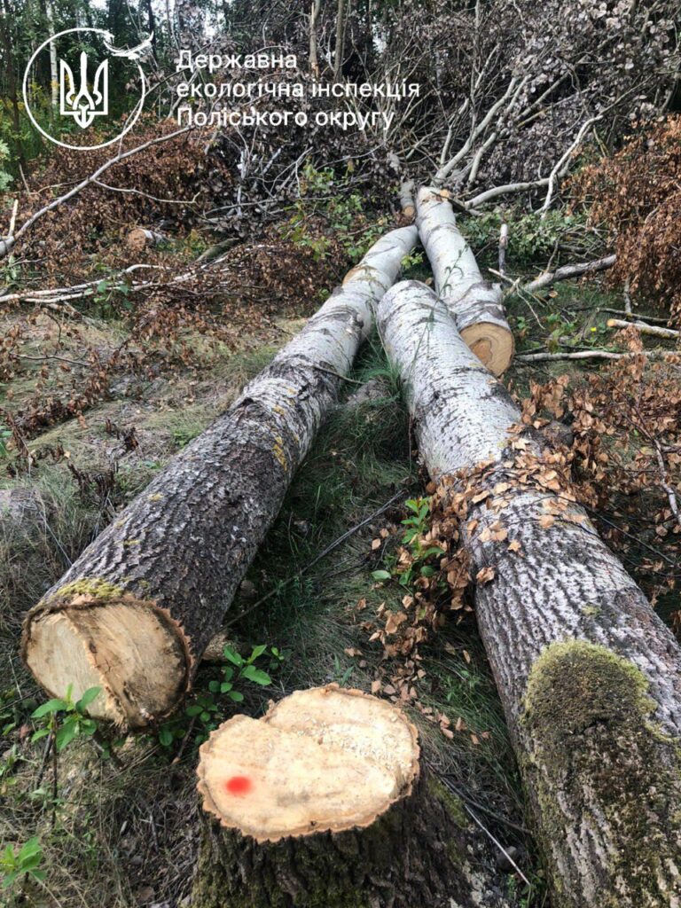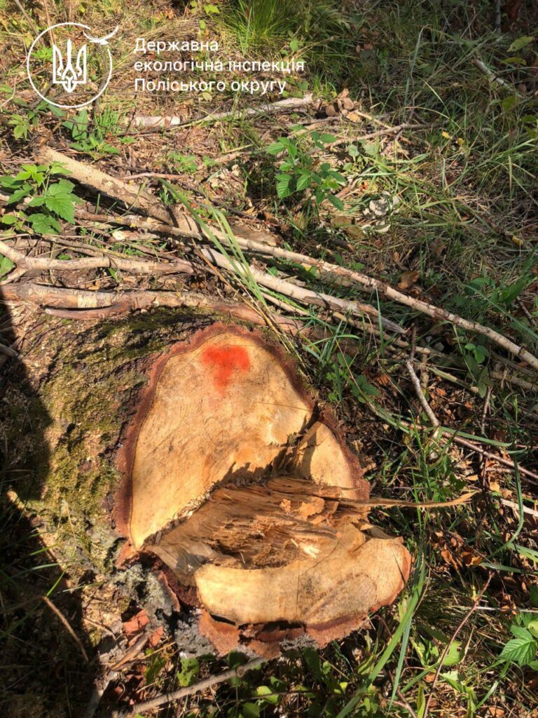 Державні інспектори з охорони навколишнього природного середовища Поліського округу здійснили виїзд на місце, зазначене у зверненні. На земельній ділянці площею близько 3,2 га було встановлено факт незаконної порубки 286 дерев різних порід.