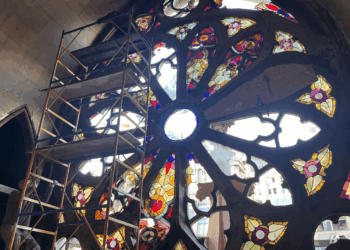 Центральний вітраж закрили одразу ж за кошти благодійників. Фото: Даша Гришина Пройшло майже три місяці...