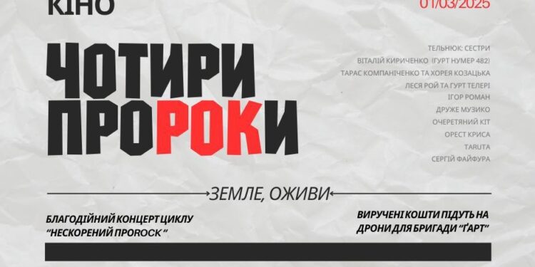 1 березня 2025 року столичний Будинок Кіно стане майданчиком для музичної події — благодійного концерту циклу Нескорений ПроRock під назвою «Чотири Пророки».